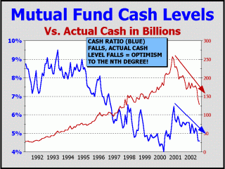 the ratio of mutual fund cash to assets surges to levels consistent with